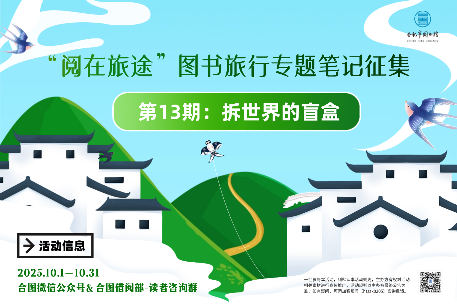 3.如因不可控因素导致活动无法进行,举办方有权延期或取消活动,请及时关注合肥市图书馆微信公众号、微博等公众平台;