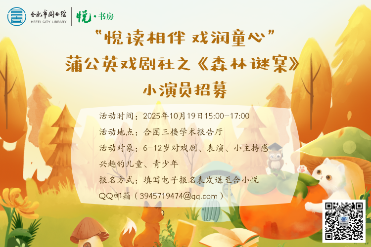 活动名称:“悦读相伴 戏润童心”蒲公英戏剧社之《森林谜案》小演员招募