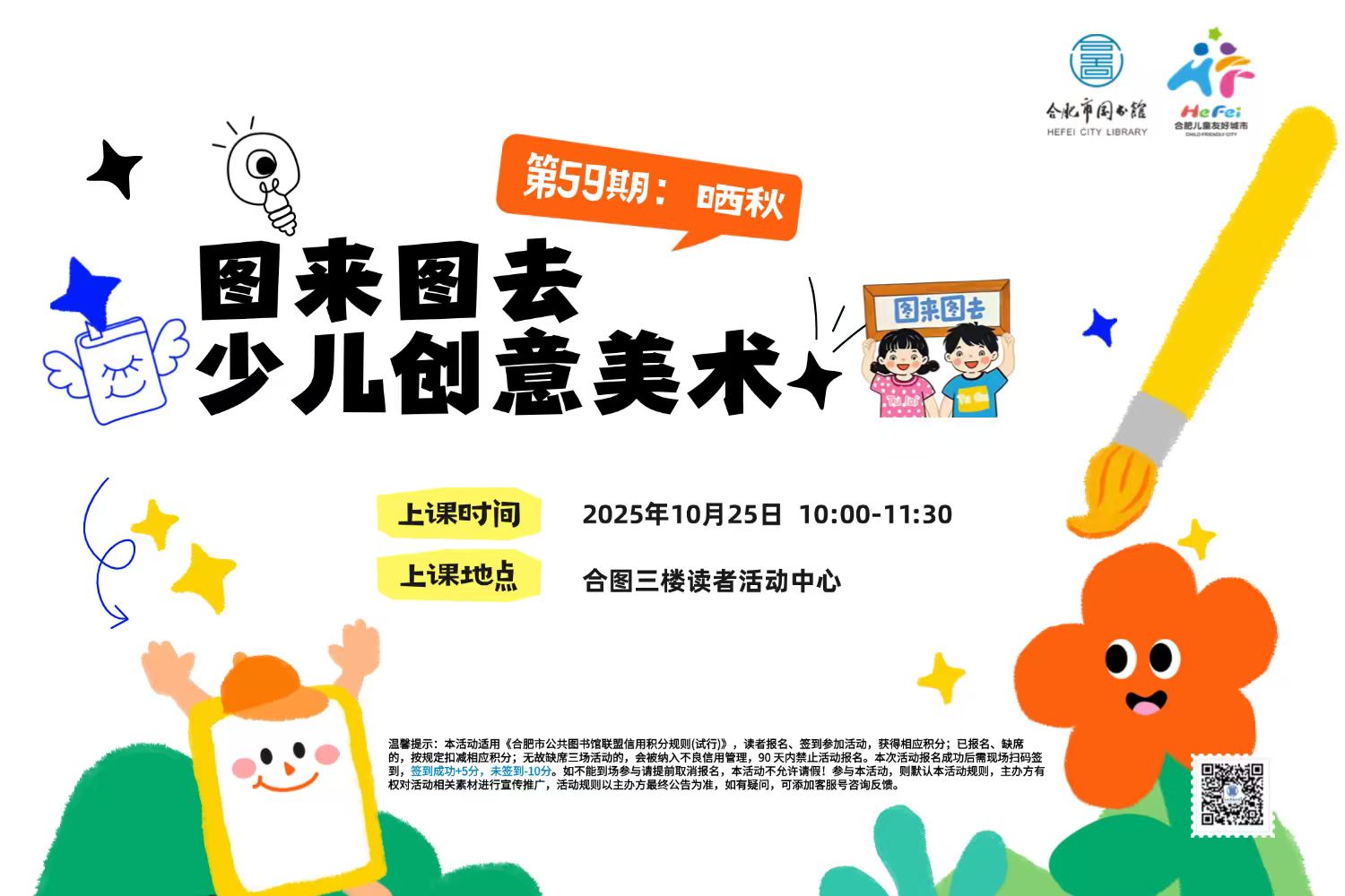 温馨提示:本活动适用《合肥市公共图书馆联盟信用积分规则(试行)》,读者报名、签到参加活动,获得相应积分;已报名、缺席的,按规定扣减相应积分;无故缺席三场活动的,会被纳入不良信用管理,90天内禁止活动报名。本次活动报名成功后需现场扫码签到,签到成功+5分,未签到-10分。如不能到场参与请提前取消报名,本活动不允许请假!