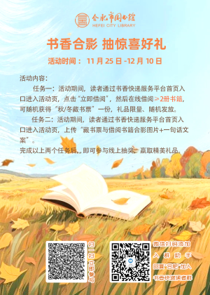 3.如因不可控因素导致活动无法进行,举办方有权延期或取消活动,请及时关注合肥市图书馆微信公众号、微博等公众平台;