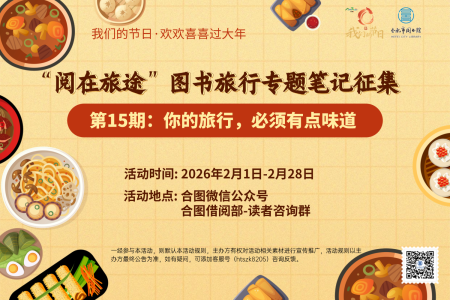 活动内容:“味道”是双关的——既是舌尖的真实滋味,也是旅程的人文气息、情绪余韵。咬下一口热气腾腾的饺子,闻到窗外飘来的年味,这些瞬间,都是“旅行的味道”。期待你用文字、图片或视频,记录下2026年春节旅中,那些与“味道”有关的片段,并结合一本书、一段阅读记忆,完成一次“有味道的旅行笔记”。投稿有机会获赠精美文创周边一份,投稿规则详见活动推文。